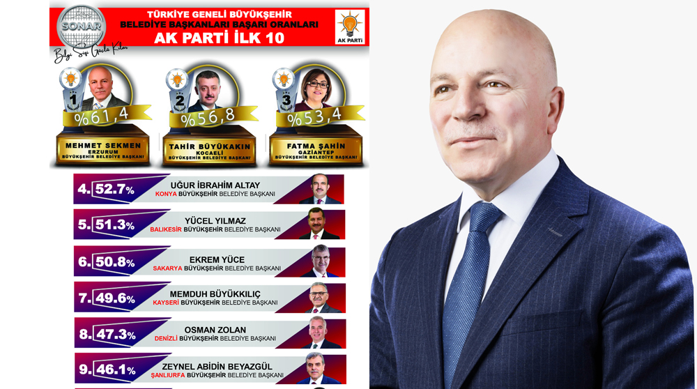Sonar Araştırma Şirketi tarafından geçtiğimiz sene de en başarılı büyükşehir belediye başkanı seçilen Başkan Mehmet Sekmen’in başarısı sadece Erzurum’da değil ülke sathında da büyük bir yankı uyandırdı. Başkan Sekmen, Mart 2022’de yapılan ankette yüzde 61.4 oy oranıyla “Türkiye’nin En Başarılı Büyükşehir Belediye Başkanı” seçildi.