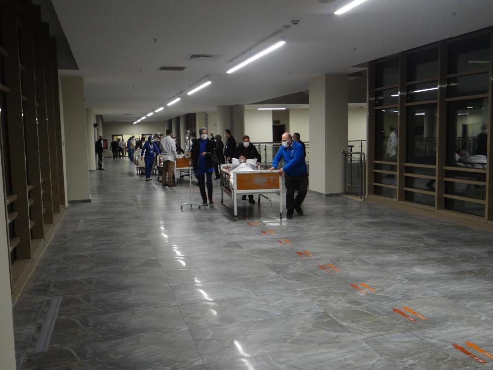 Erzurum Şehir Hastanesinde yapılan yangın tatbikatı gerçeğini aratmadı. Senaryo gereği Beyin Cerrahi Yoğun Bakım Servisinde çıkan yangında hastaların sevki başarılı şekilde uygulandı.
