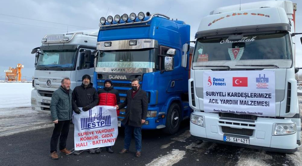 Suriye güvenli bölgede kurulu çadır kentlerde ağır geçen kış şartları, yoğun kar yağışları nedeniyle çöken ve su altında kalan çadırlarda yaşanan insanlık trajedisi için Erzurum Sivil Toplum Platformu bünyesinde bulunan yardım kuruluşlarıyla yardım çalışması başlatıldı. Yardım kuruluşları topladıkları gıda ve yardım malzemelerini bölgeye gönderdi.