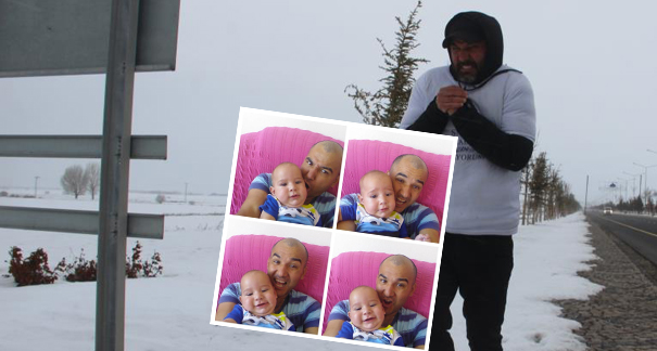 Sakarya’da yaşayan Yalçın Çalışkan, Amerikan vatandaşı eşinin 6 yıldır oğlunu kendisine göstermemesine tepki göstermek ve sesini duyurmak için yürüyerek Türkiye’yi dolaşıyor. Kar, tipi ve fırtına dinlemeyen Çalışkan, eksi 10 derecede Erzurum’da güçlükle ilerledi.