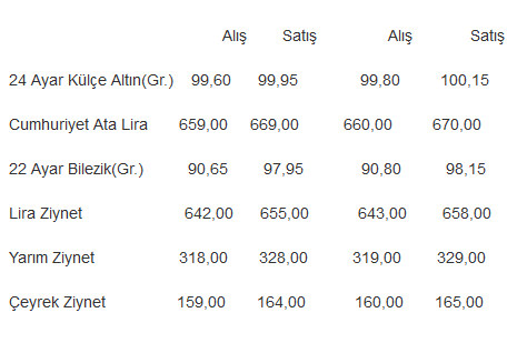 Kapalıçarşı’da işlem gören külçe altının gram satış fiyatı 91,60 liraya, genelde Türk yatırımcısının tercih ettiği yastık altında biriken Cumhuriyet Altını 617 liraya kadar geriledi.