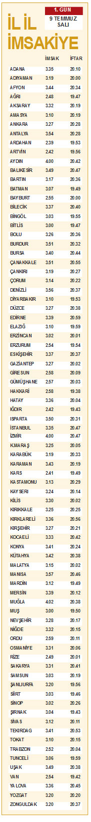 Takvim yapanlar, bu ayet ve hadislere uymadıkları için bu günlerde oruca çok erken başlanmaktadır. Mesela Ramazan’ın ilk günü olan 9 Temmuz 2013’te Diyanet Takvimine göre oruca 03.35’te başlanırken bizim hazırladığımız Süleymaniye Vakfı takvimine göre 4.54’te başlanmaktadır. Arada tam bir saat 19 dakika fark vardır.