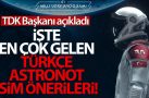 “Cacabey, göksu, göksü, gökreis, göktürk, gökay, Türkay, Türkonot, evrenot, gökmen, uzay insanı, Alpaslan, Fatih, akıncı.”